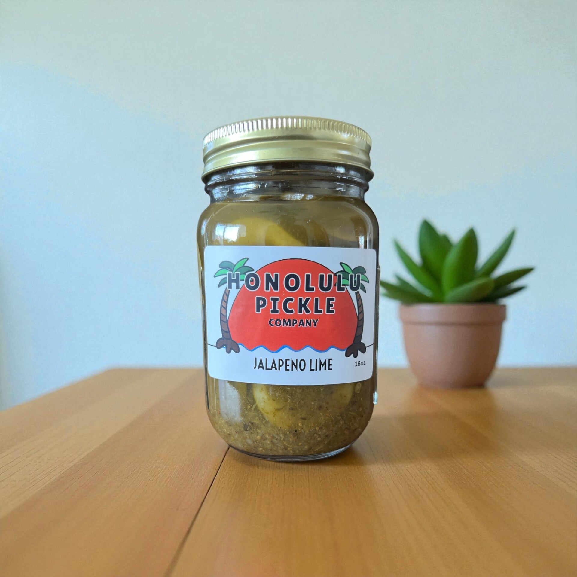 Cucumbers, lime rind, garlic, onion, green onion, basil, oregano, thyme, ginger, celery seeds, mustard, habanero peppers, jalapeno peppers, lime juice, sugar, pickling salt, vinegar, purified water.